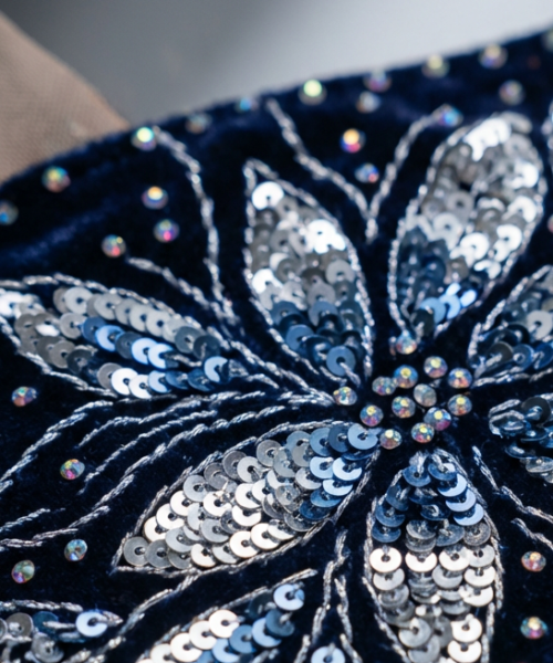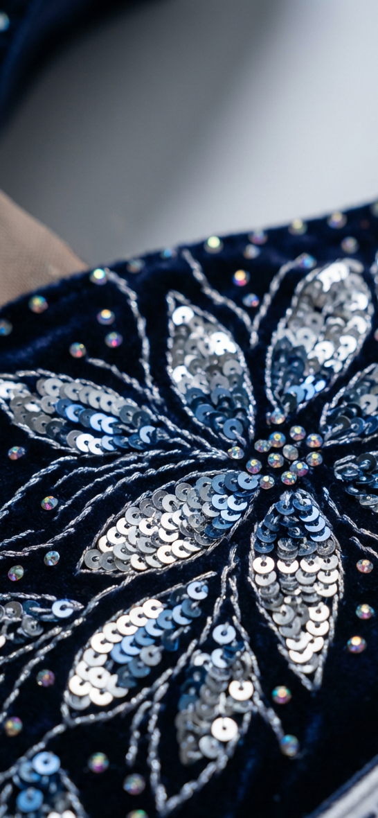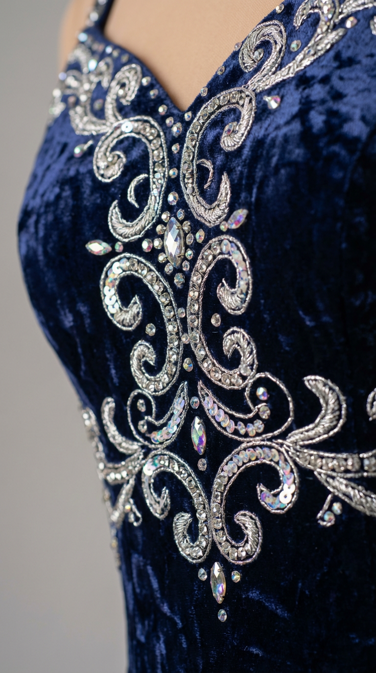 Applicazioni in cristalli, pizzi e dettagli sartoriali